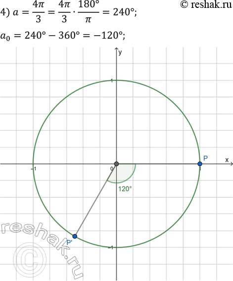На единичной окружности построить точку, полученную поворотом точки (1; 0) на заданный угол (939—941).
