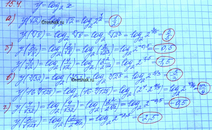 15.4. а) х1 = коорень 2, х2 = корень 5 степени 8;
