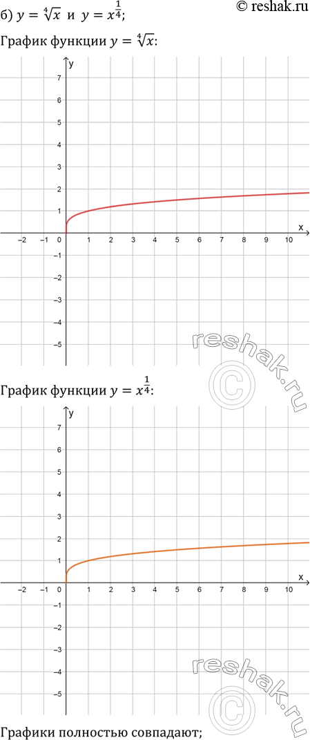 9.2 Постройте и сравните графики функций:а)y= корень 3 степени x и y=x1/3;б)y= корень 4 степени x и y=x1/4.