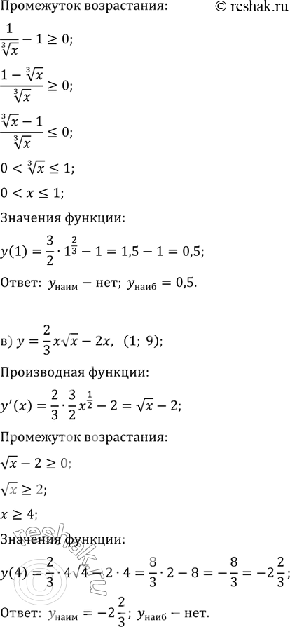 а) у = 2/3х корень х - 2х, [1; 9];в) у = 2/3х корень х - 2х, (1; 9);