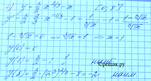 б) y= 3/2 x2/3 - x, (0;8); г) y = 3/2х2/3 - х, [0; 8].