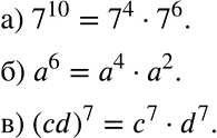 598. Разложите на два множителя хотя бы одним способом: а) 7^10; б) а6; в) (cd)7.