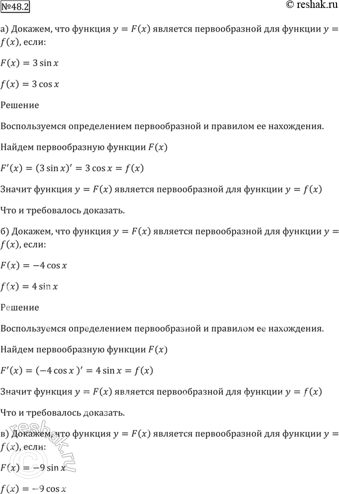 48.2 a) F(x) = 3 sin x, f(x) = Р—cos x; Р±) F(x) = -4 cos x, f(x) = 4 sin x;