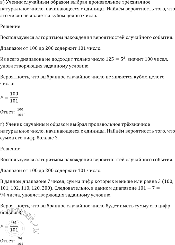 51.7 Ученик случайным образом выбрал произвольное трёхзначное натуральное число, начинающееся с единицы. Найдите вероятность того, что: а) это число нечётное; б) среди цифр этого числа есть 3;