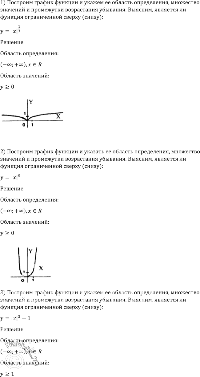129. Построить график функции и указать её область определения, множество значений и промежутки возрастания и убывания; выяснить, является ли функция ограниченной сверху (снизу): 1
