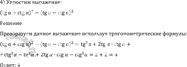 1300 4)(tga+ctga)2 - (tga-ctga)2.