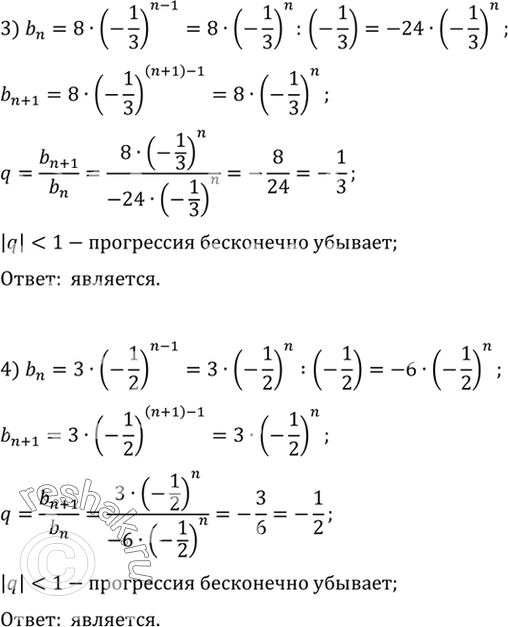 21.Выяснить, является ли последовательность бесконечно убывающей геометрической прогрессией, если она задана формулой n -го члена: