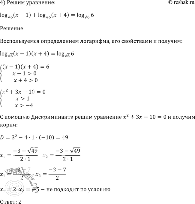 4) log корень 6(x -1) + log корень 6 (x + 4) = log корень 6(6).