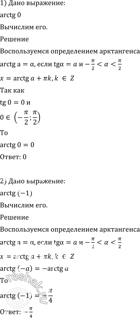 Вычислить (607—608). 607 1) arctg 0; 2) arctg (-1); 3) arctg (-корень 3/3); 4) arctg корень 3.
