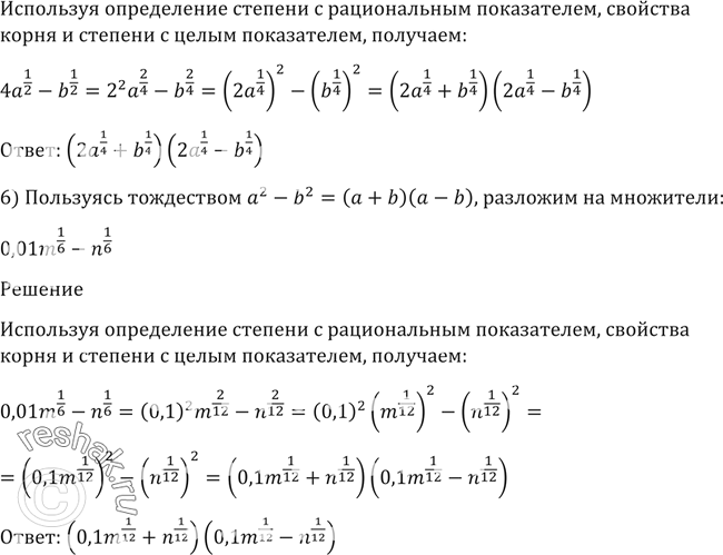 64. Пользуясь тождеством a2-b2=(a+b)(a-b), разложить на множители: 1) a1/2 - b1/2; 2) y2/3 -1; 3) a1/3-b1/3; 4) x-y; 5) 4a1/2 - b1/2;
