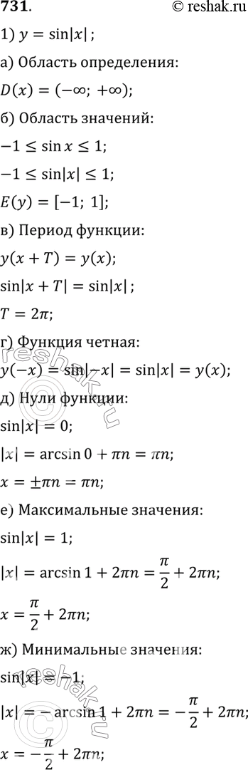 731 Построить график функции: 1) y = sin|x|; 2) y = |sinx|.