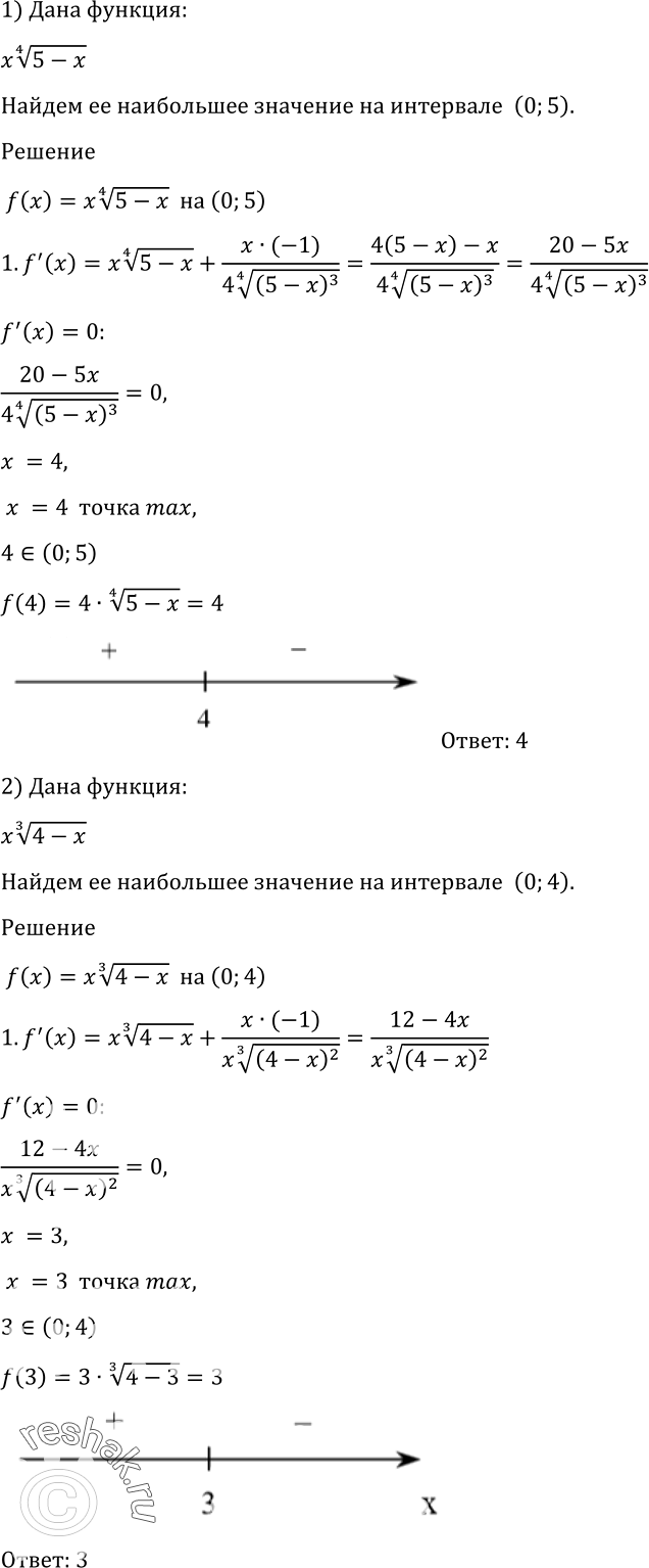 2) х корень 3 степени (4-x) на интервале (0; 4);