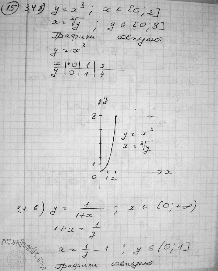 3.4 Найдите функцию х = фи (у), обратную к данной функции у = f(x), и постройте графики обеих функций в одной системе координат: