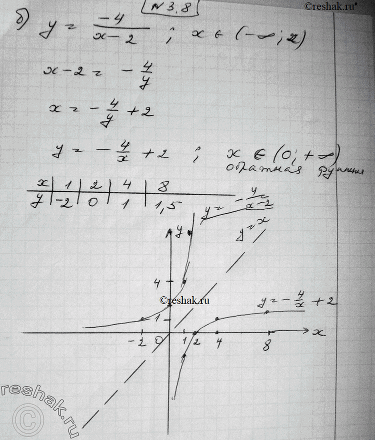 3.8 а) y=4/(x-2), x принадлежит (2;+бесконечность);