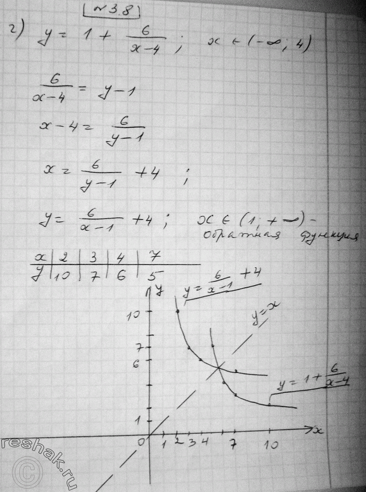 г) y=1+ 6/(x-4), x принадлежит (-бесконечность;4);