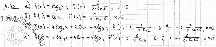4.45 a) f(x) = log2x; б) f(x) = lgx; B) f(x) = 4 log2(x) + 3 lnx - 2 lgx; г) f(x) — 5 log3(x) - 6 ln x + 7 lg x.