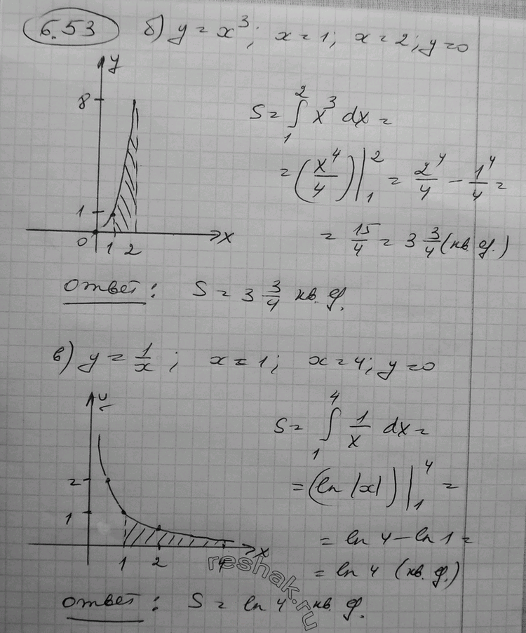 6.53 а) у = х2, х = 3, х = 5, у = 0; б) у = х3, х = 1, х = 2, у = 0;