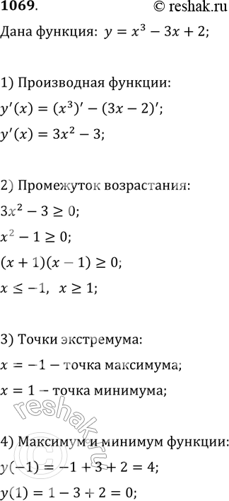 1069. Исследовать с помощью производной функцию