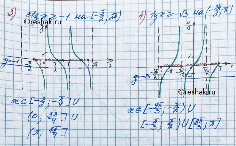 4) tgx>=-корень 3, (-3пи/2; пи].