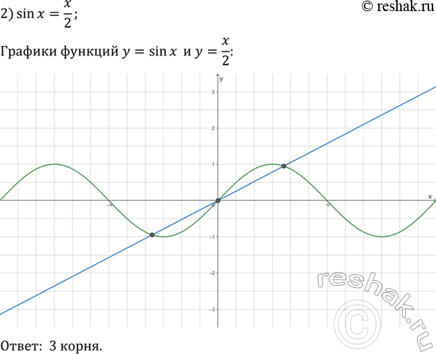 119. С помощью графиков функций найти число корней уравнения: 1) cosx=x2; 2) sinx=x/2.