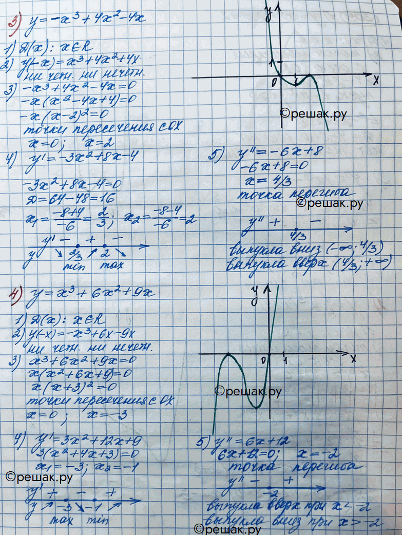 Построить график функции (308-309). 308. 1) у = х3 - 3х2 + 4; 2) у = 2 +3х-x3; 3) у = -х3 + 4х2 - 4х;