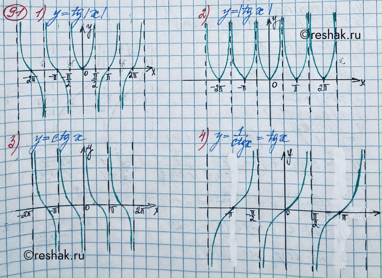 Построить график функции (91—93). 91. 1) y = tg|x|; 2) y = |tgx|; 3) y = ctgx; 4) y = 1/ctgx.