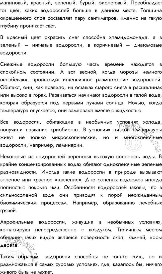 10. Используя дополнительные источники информации (книги, Интернет), подготовьте сообщение о водорослях, живущих в экстремальных условиях – при низкой температуре среды, высоком давлении и др.
