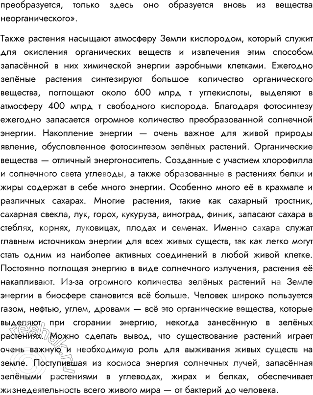 Изучив параграф учебника и дополнительный текст, подготовьте сообщение «Роль зелёных растений в обеспечении энергией живых организмов на нашей планете».