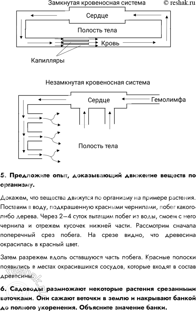 5. Предложите опыт, доказывающий движение веществ по организму.