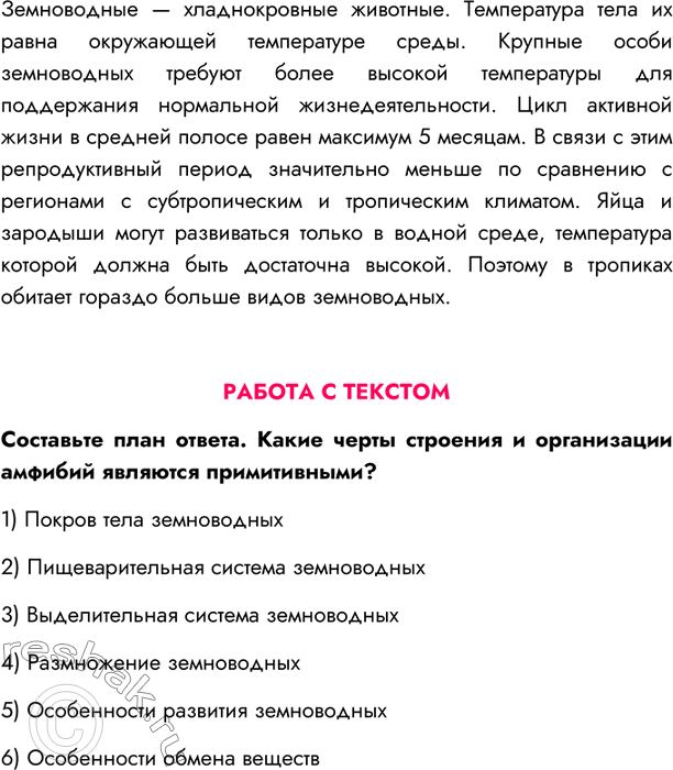 Составьте план ответа. Какие черты строения и организации амфибий являются примитивными?