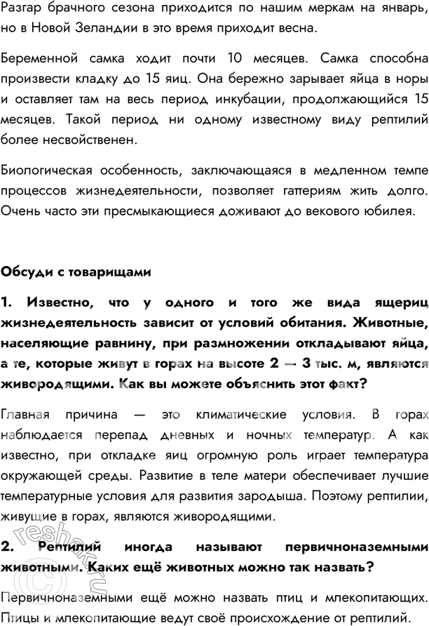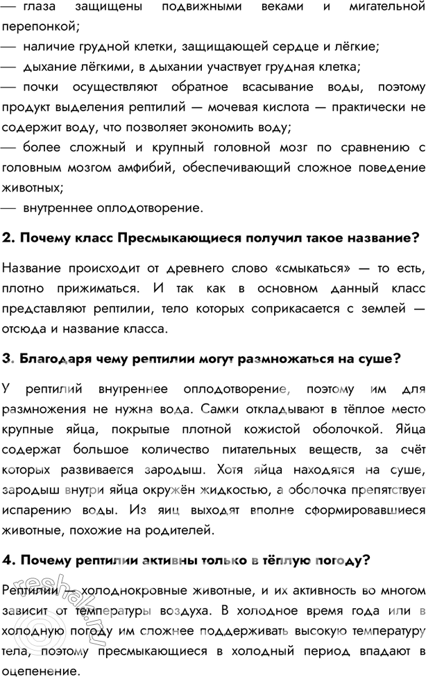 1. Какие особенности строения и жизнедеятельности позволяют считать рептилий настоящими сухопутными животными?