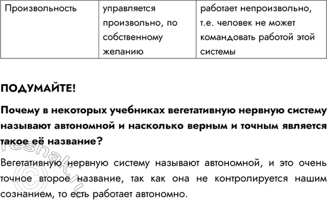 4. Чем вегетативная нервная система отличается от соматической нервной системы? Заполните таблицу в рабочей тетради (задание № 2 на с. 94).
