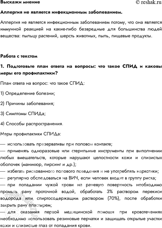 1. Подготовьте план ответа на вопросы: что такое СПИД и каковы меры его профилактики?