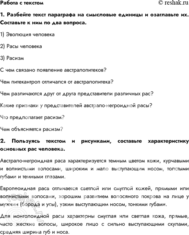 2. Пользуясь текстом и рисунками, составьте характеристику основных рас человека.