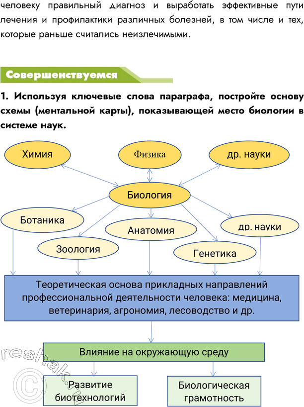 1. Используя ключевые слова параграфа, постройте основу схемы (ментальной карты), показывающей место биологии в системе наук.