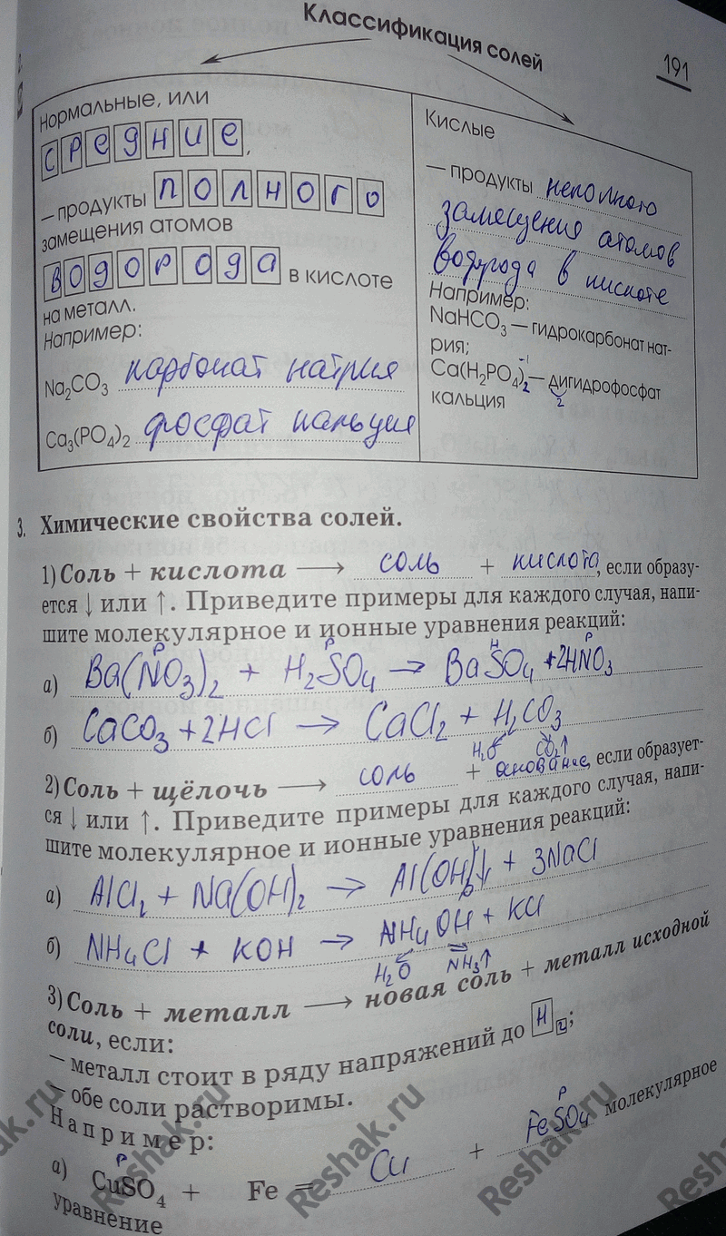 Страница 191 ГДЗ Рабочая тетрадь Габриелян 8 класс (Химия)