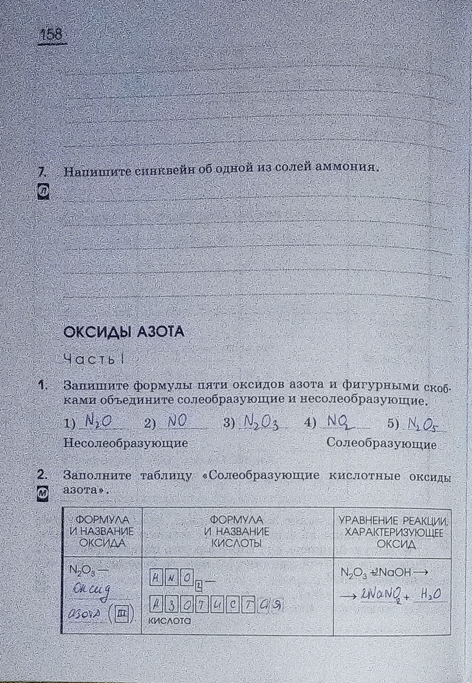 Страница 158 ГДЗ Рабочая тетрадь Габриелян 9 класс (Химия)