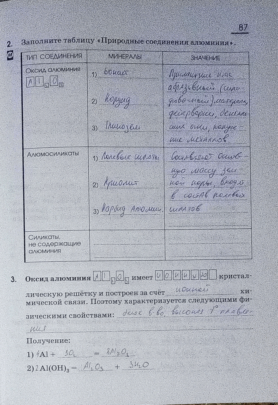 Страница 87 ГДЗ Рабочая тетрадь Габриелян 9 класс (Химия)